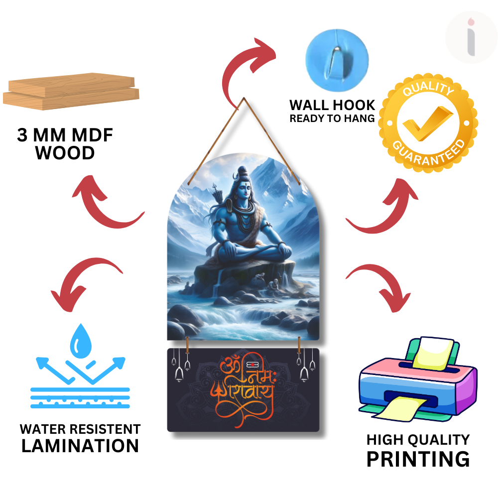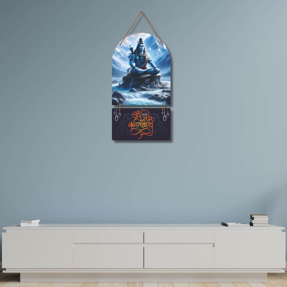 Bring home the aura of spirituality with this serene wall hanging of Lord Shiva in deep meditation amidst the Himalayas. The artwork beautifully combines divine energy with artistic detail, featuring the sacred mantra “ॐ नमः शिवाय.” Perfect for your living space, meditation corner, or as a gift, it radiates peace, strength, and positivity.