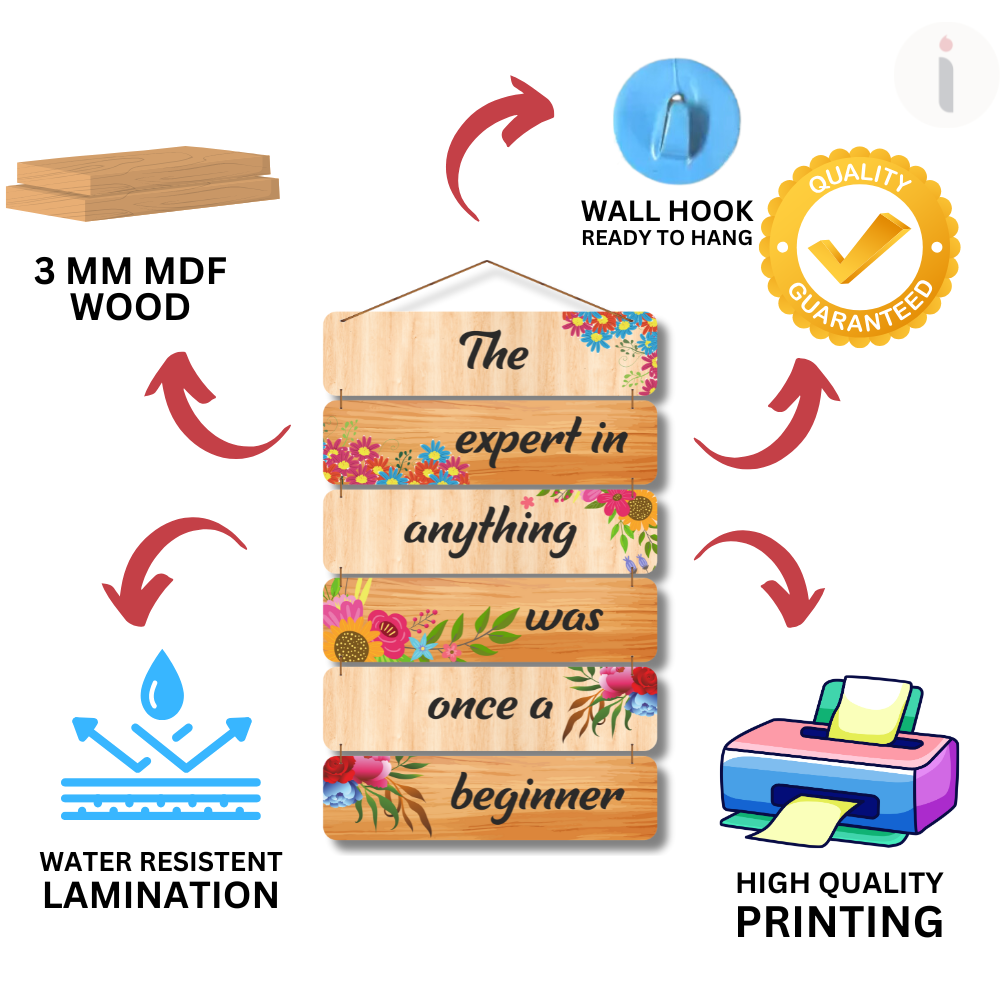 Bring motivation into your space with this rustic wooden wall hanging featuring the inspiring quote: “The expert in anything was once a beginner.” Enhanced with colorful floral designs, it’s a perfect blend of charm and encouragement. Ideal for homes, offices, or study rooms, this piece reminds you to embrace learning and keep growing every day.