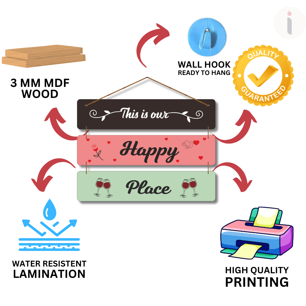 This "This Is Our Happy Place" wall hanging is a heartwarming décor piece that radiates warmth, love, and positivity. Crafted from high-quality materials with an elegant design, it beautifully highlights the joy and comfort of your special space. Perfect for homes, living rooms, or cozy corners, it adds a welcoming and cheerful touch to any setting.