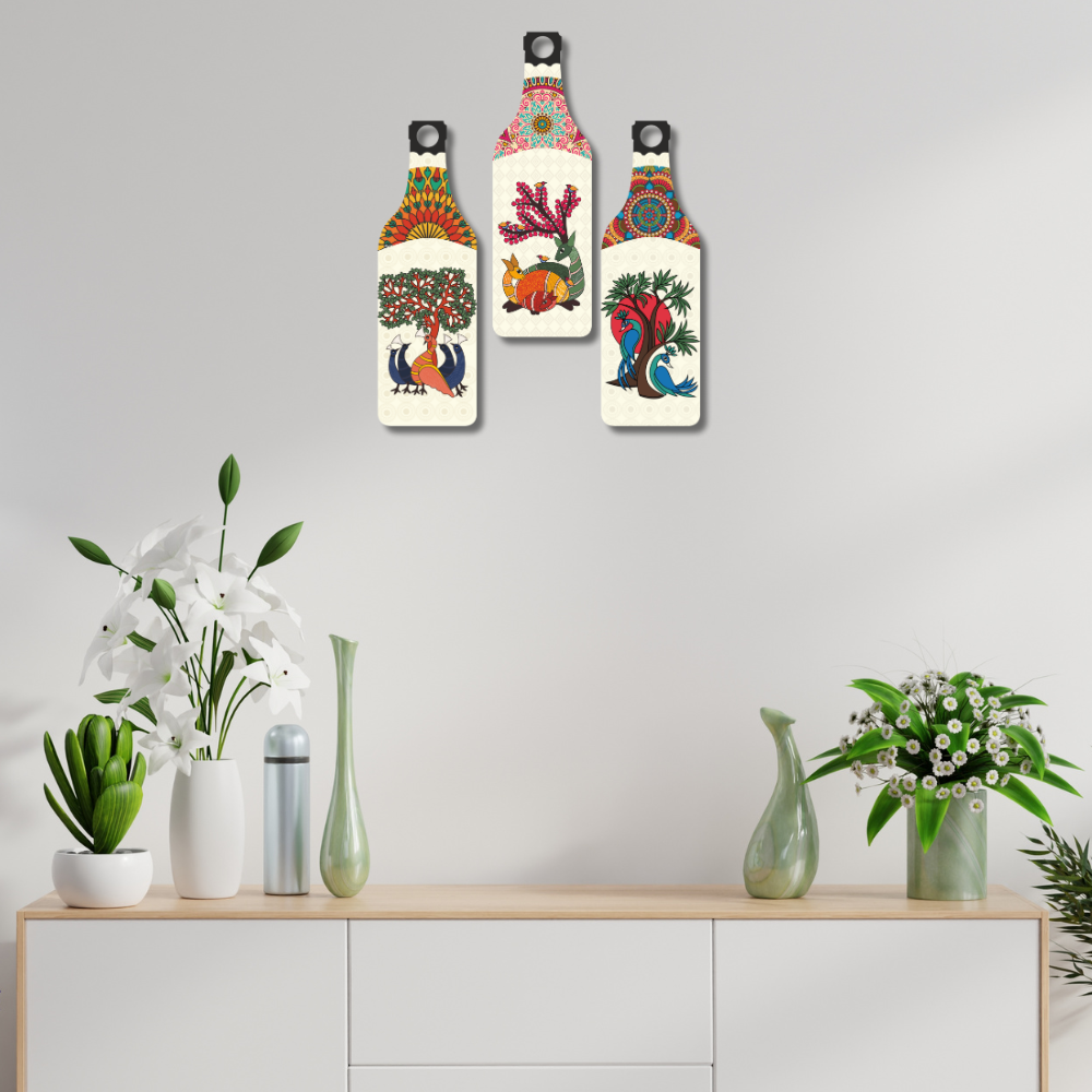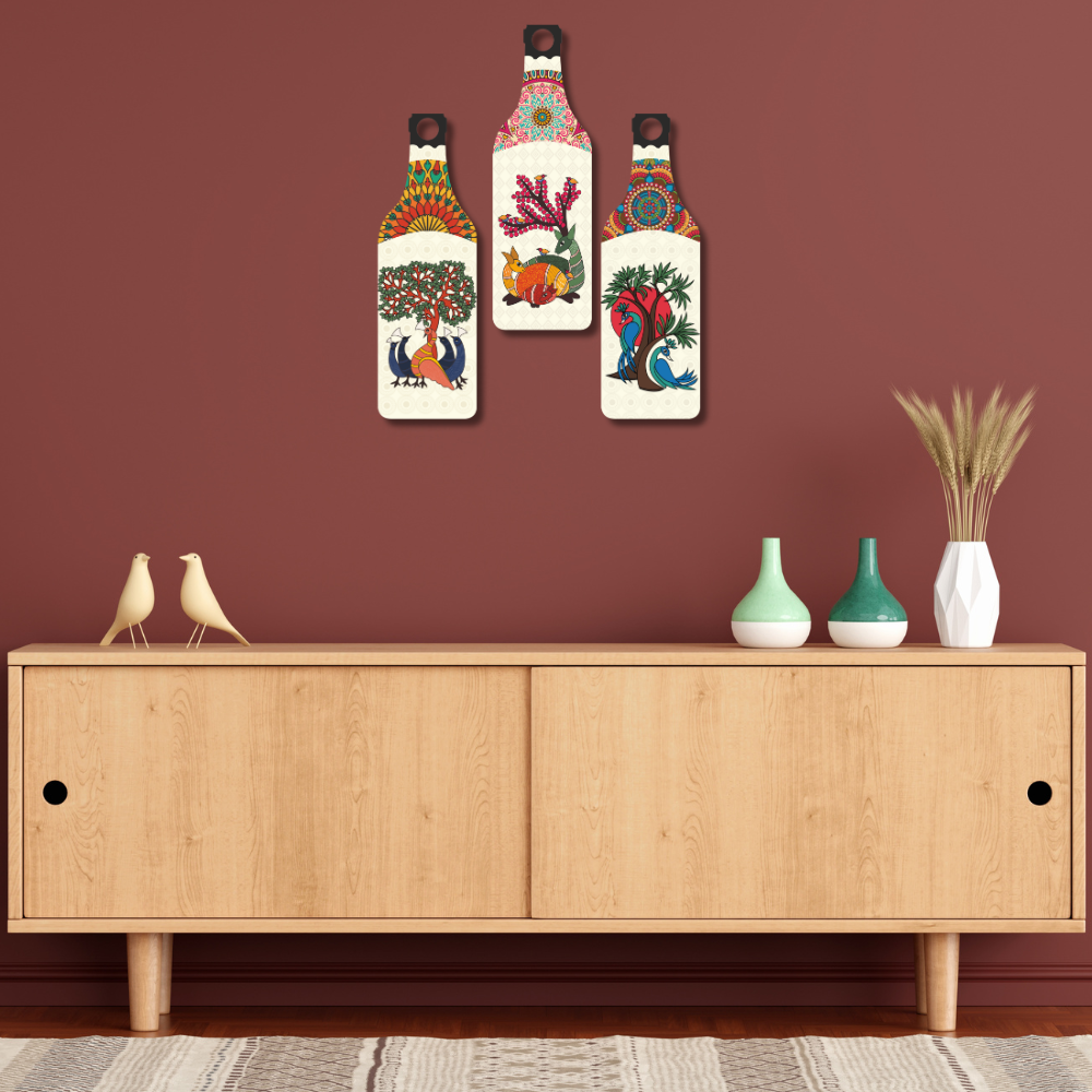 A splash of tradition and artistry to your kitchen or dining space with this Folk Art Wooden Chopping Board Set. Featuring vibrant hand-painted designs of peacocks, deer, and trees, each piece is a masterpiece of culture and color. Perfect as wall décor, unique serving boards, or gifting for art lovers.