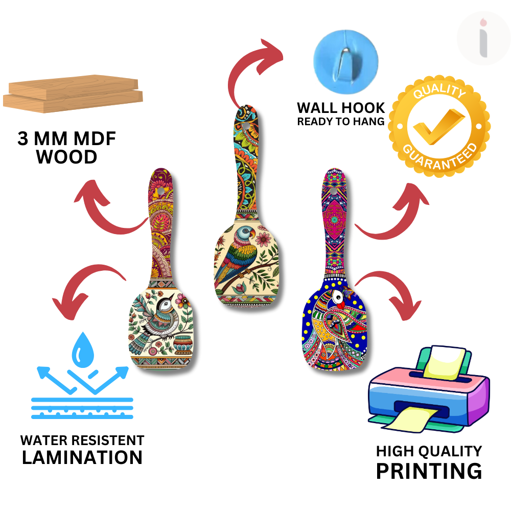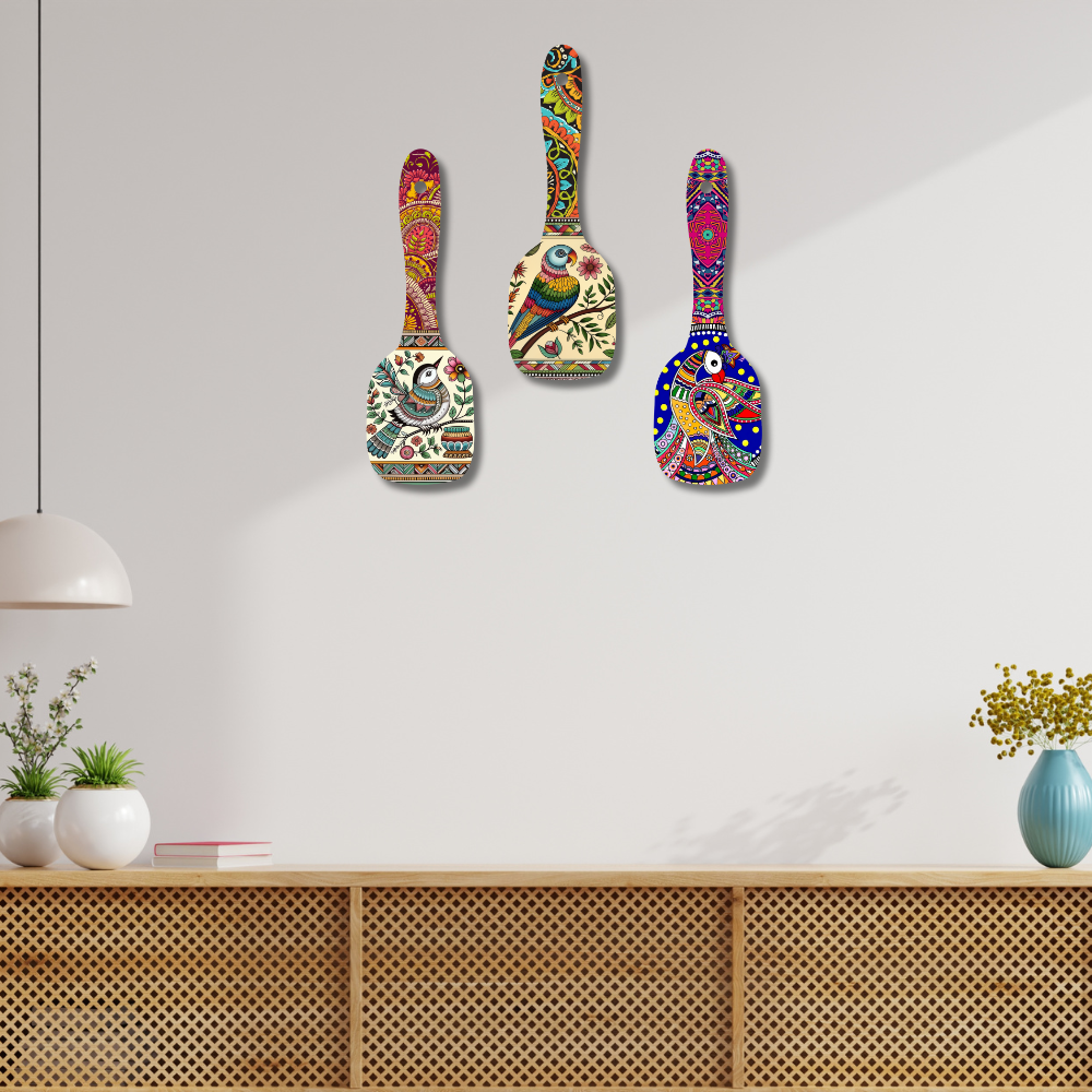 Add a touch of tradition and vibrance to your walls with this beautifully crafted wooden wall hanging featuring Madhubani-inspired bird artwork. Rich in colors and intricate patterns, it brings cultural charm and elegance to any space. Perfect for living rooms, entryways, or as a thoughtful gift, this piece reflects Indian folk art while enhancing your home décor with artistic beauty.