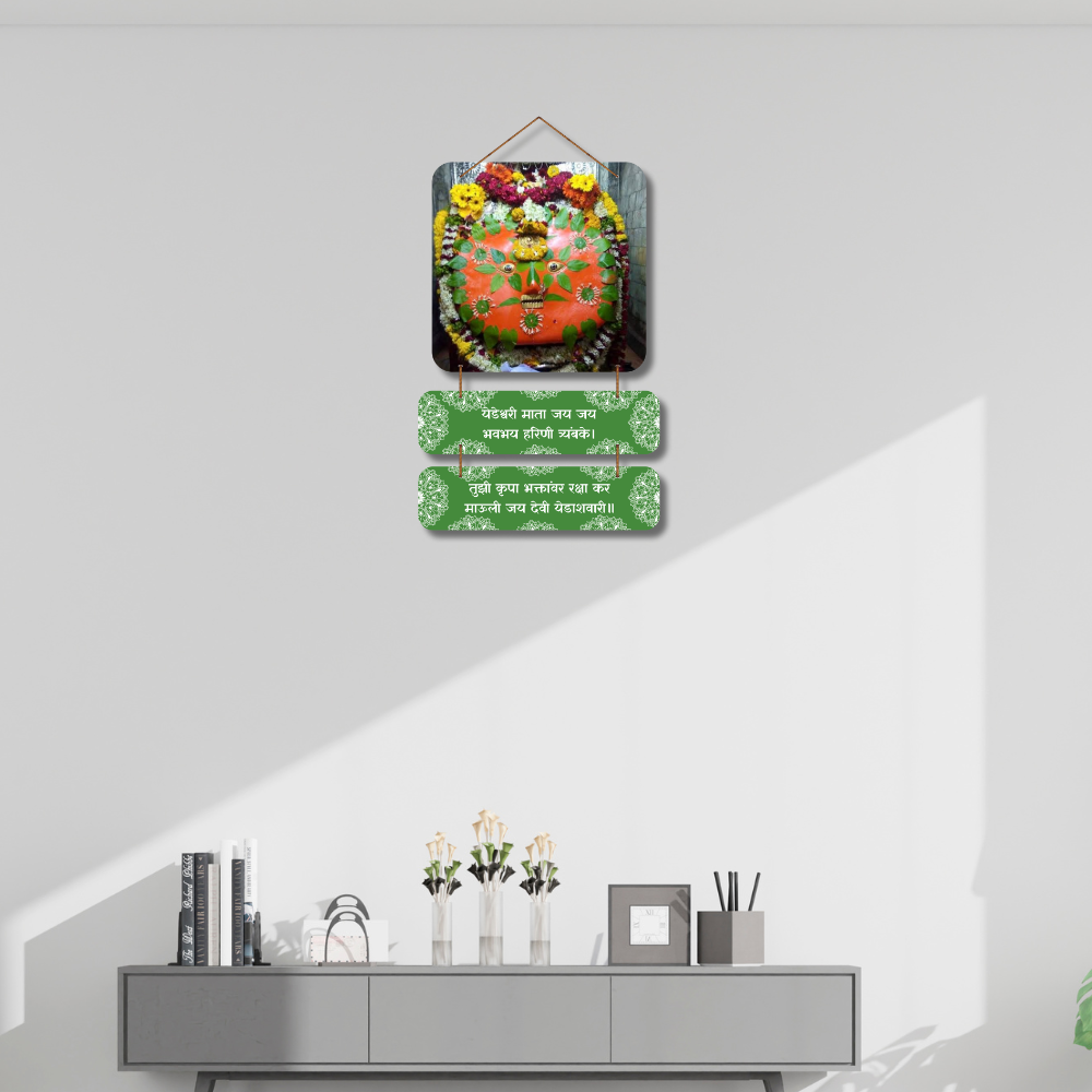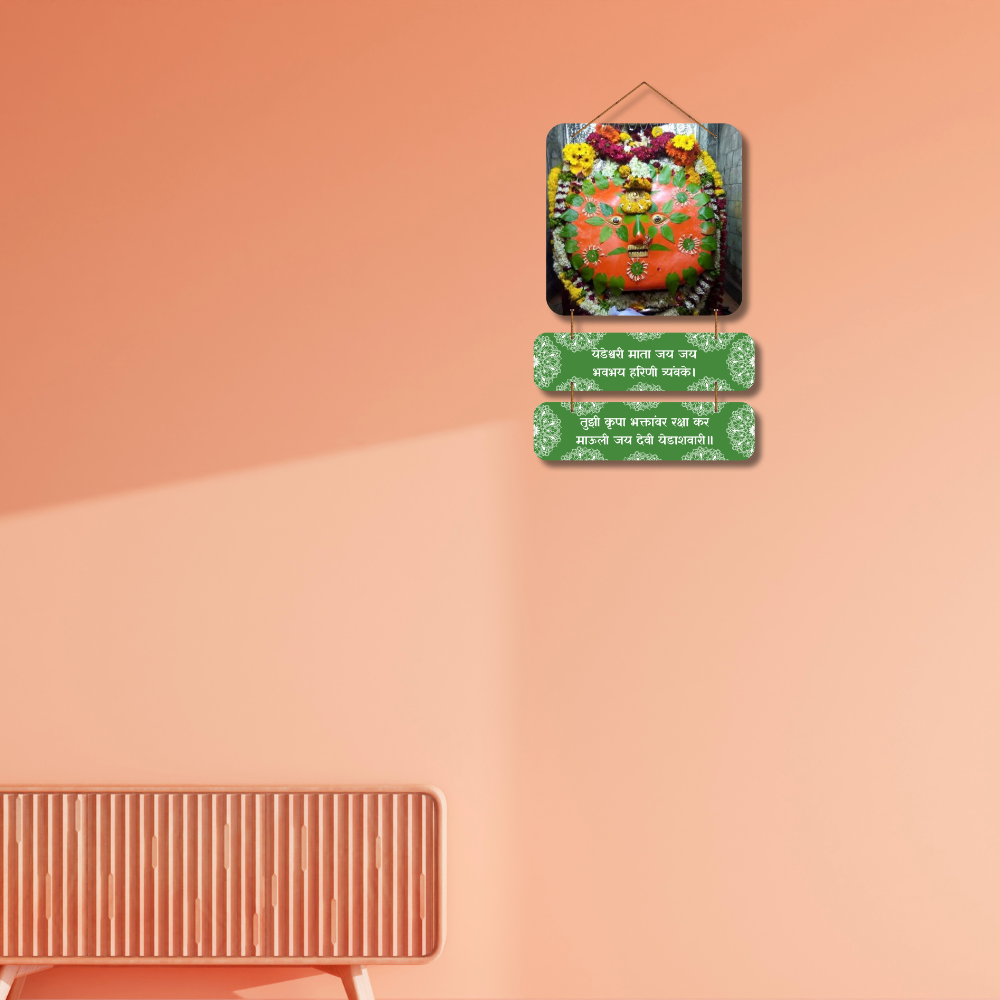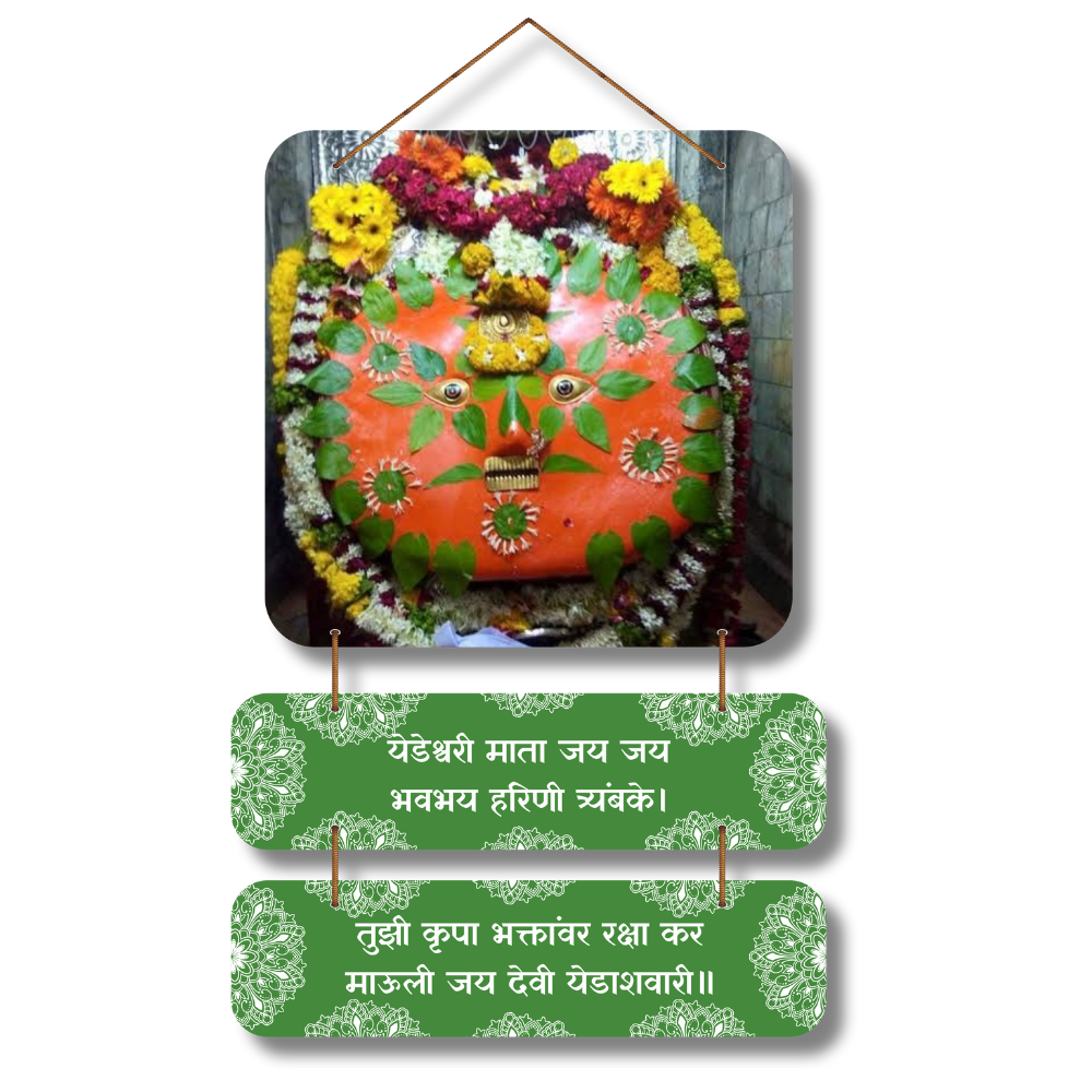 Invoke divine protection and blessings with this sacred wooden wall hanging of Goddess Yedashwari Mata 🌺🙏. Adorned with traditional floral decorations and powerful devotional verses, it radiates strength, courage, and positivity ✨🕉️. Perfect for pooja rooms and homes, this spiritual décor brings peace, faith, and protective energy to your surroundings every day 🌼🌿.