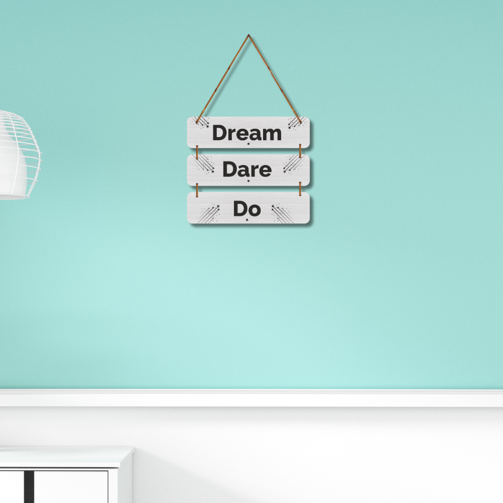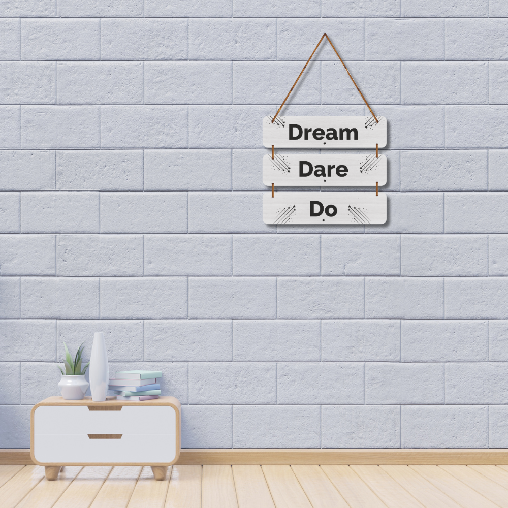 Inspire action and courage with this minimalist “Dream Dare Do” wall hanging. Crafted with a clean white background and bold typography, it reminds you to chase dreams, take risks, and turn them into reality. Perfect for bedrooms, offices, or study spaces, it adds daily motivation and positive energy to your surroundings.