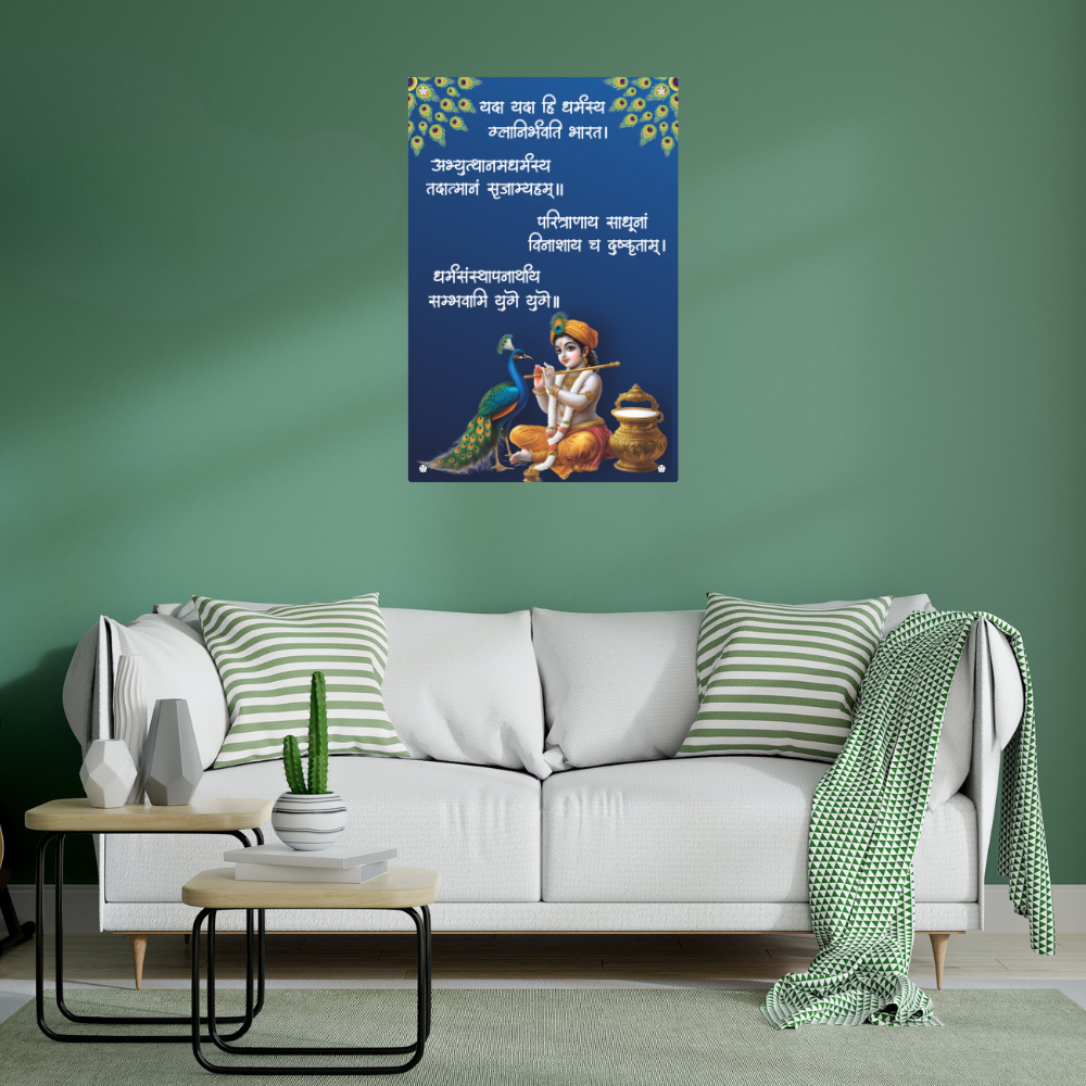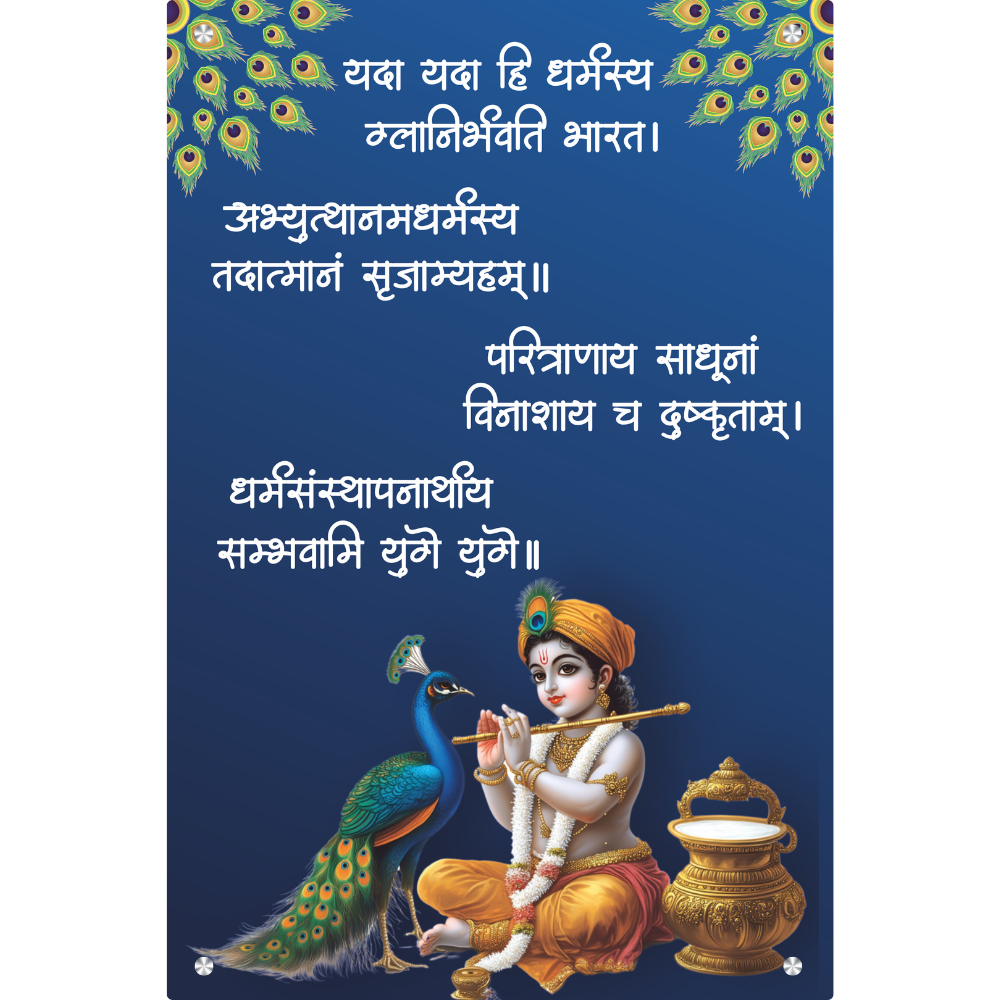Design Theme: Bhagavad Gita shloka with optional Lord Krishna or battlefield artwork