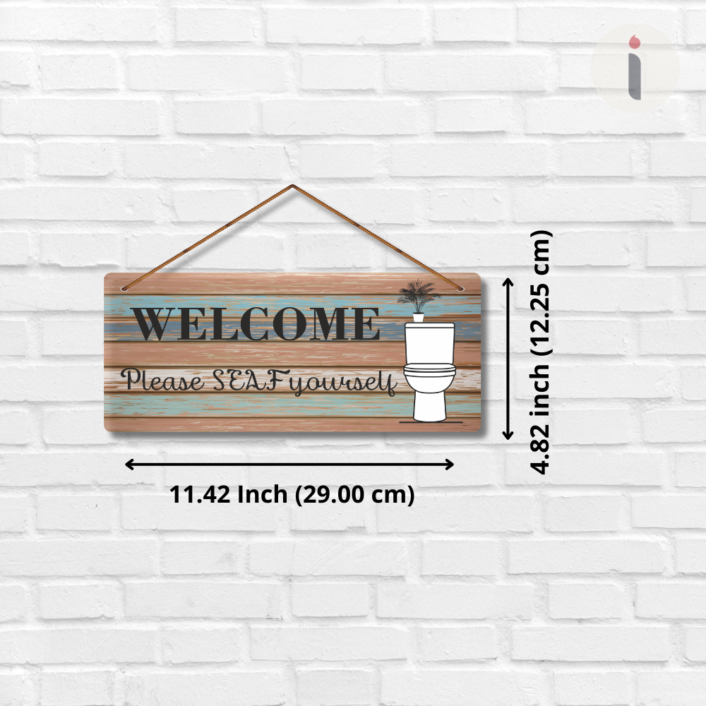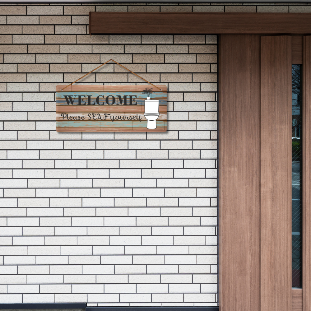 Add a touch of humor and charm to your bathroom décor with this quirky Welcome – Please Seat Yourself wall hanging. Crafted with a rustic wooden look and fun toilet graphic, it’s perfect for creating a lighthearted atmosphere. A playful sign that makes guests smile while adding personality and warmth to your restroom space.