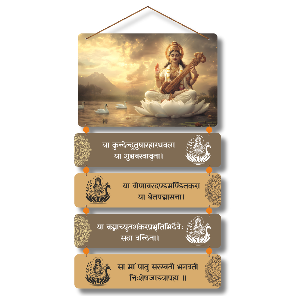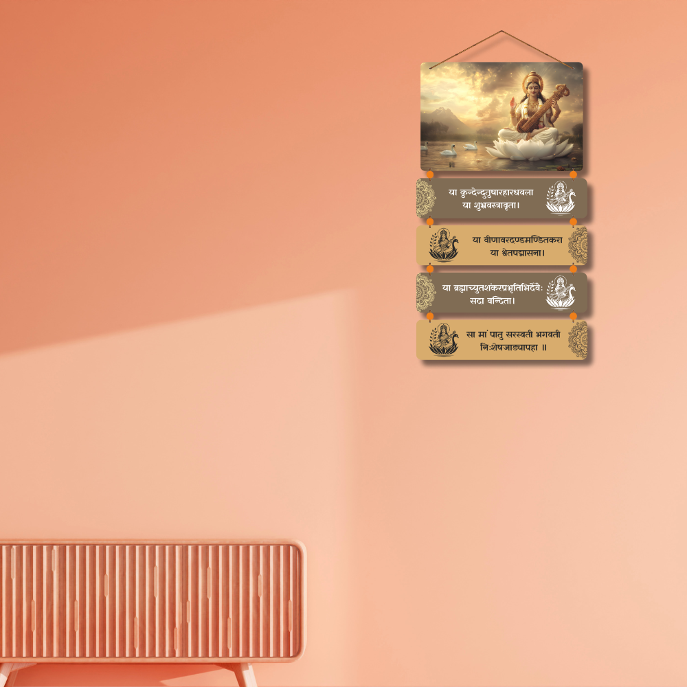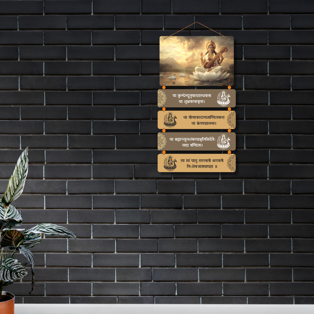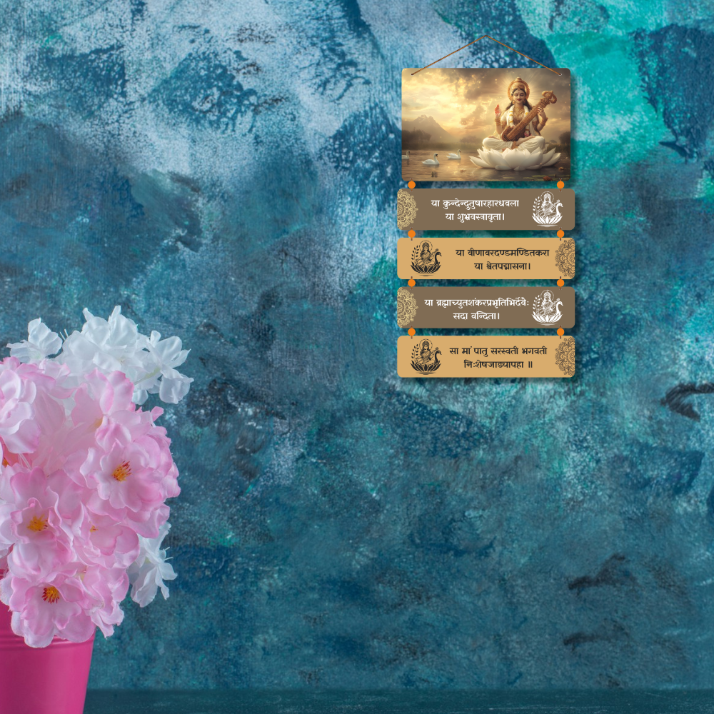 Invoke wisdom, purity, and creativity with this Ya Kundendu Tusara Hara Dhavala Wall Hanging 🎶📖. Featuring Goddess Saraswati seated gracefully on a lotus, it radiates calm and divine energy 🌸✨. Perfect for study rooms, temples, or living spaces, this elegant wall décor inspires knowledge, clarity, and spiritual harmony in everyday life 🙏🕊️.