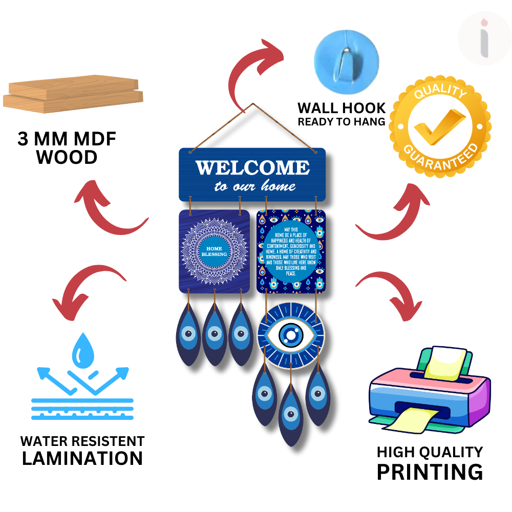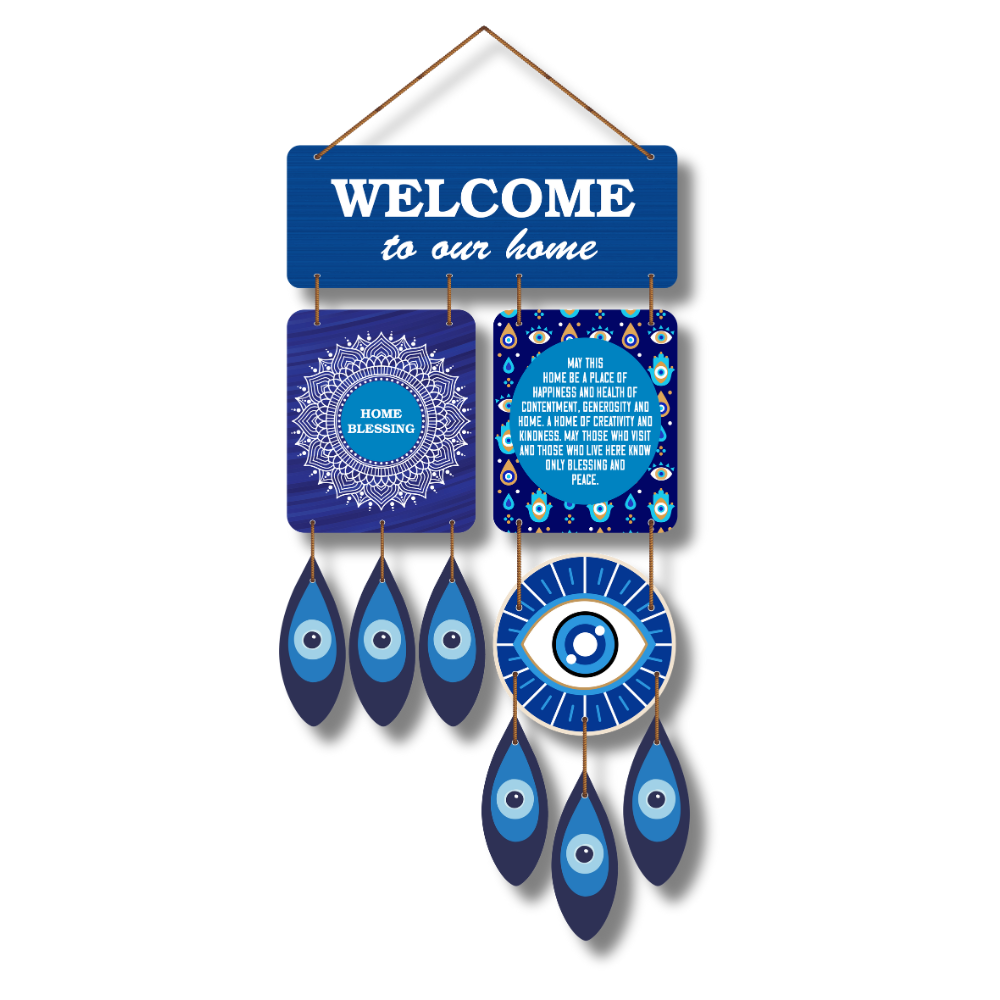Welcome warmth, protection, and positivity into your home with this beautifully designed Welcome – Home Blessing wall hanging 🧿✨. Featuring elegant blue tones, mandala art, and the powerful evil eye symbol, it adds charm while warding off negativity. Perfect for entrances, living spaces, or gifting, it brings peace, luck, and good vibes to every corner 💙🏡🌸.