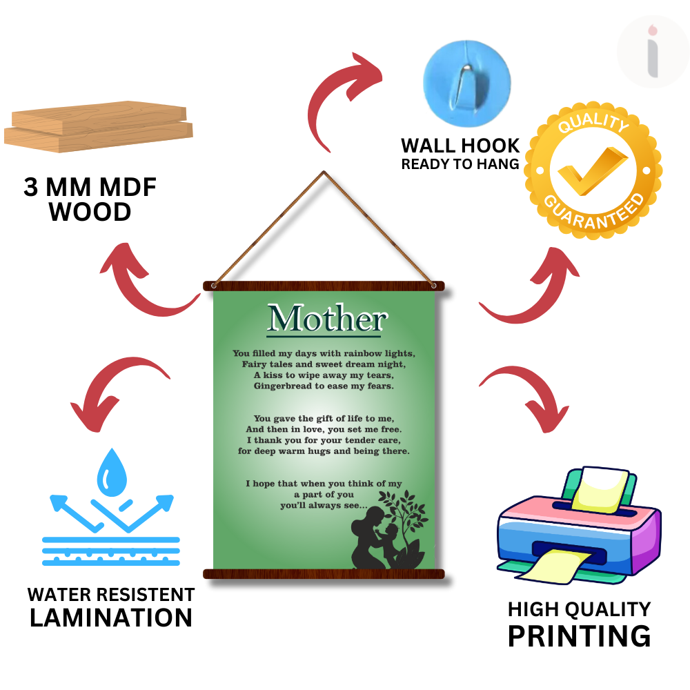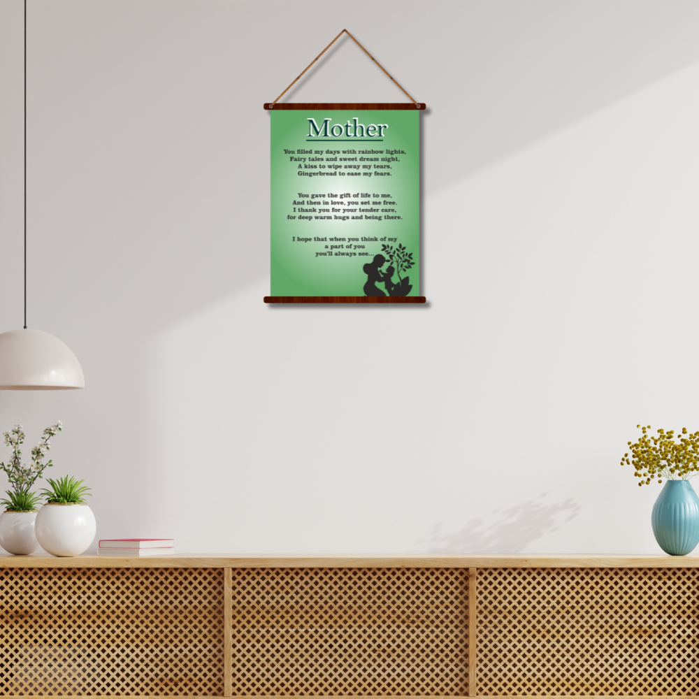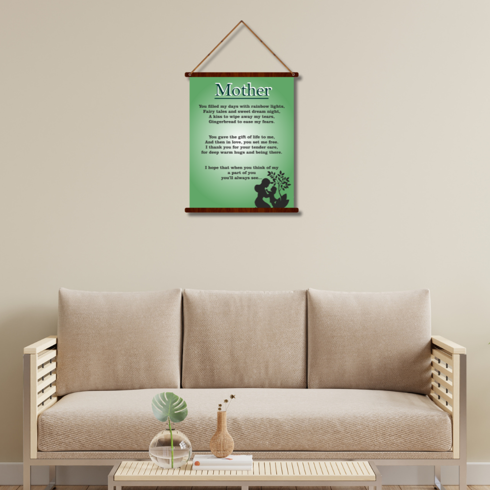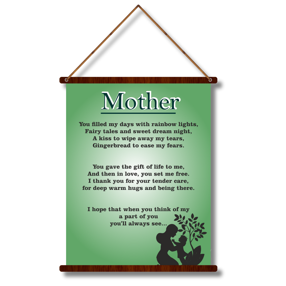 This touching wall hanging beautifully expresses the love, care, and sacrifices of a mother. With poetic verses filled with warmth and gratitude, it’s a perfect reminder of her endless affection and guidance. Ideal for gifting on Mother’s Day, birthdays, or simply to show appreciation, this piece adds emotional charm and heartfelt meaning to any home décor.
