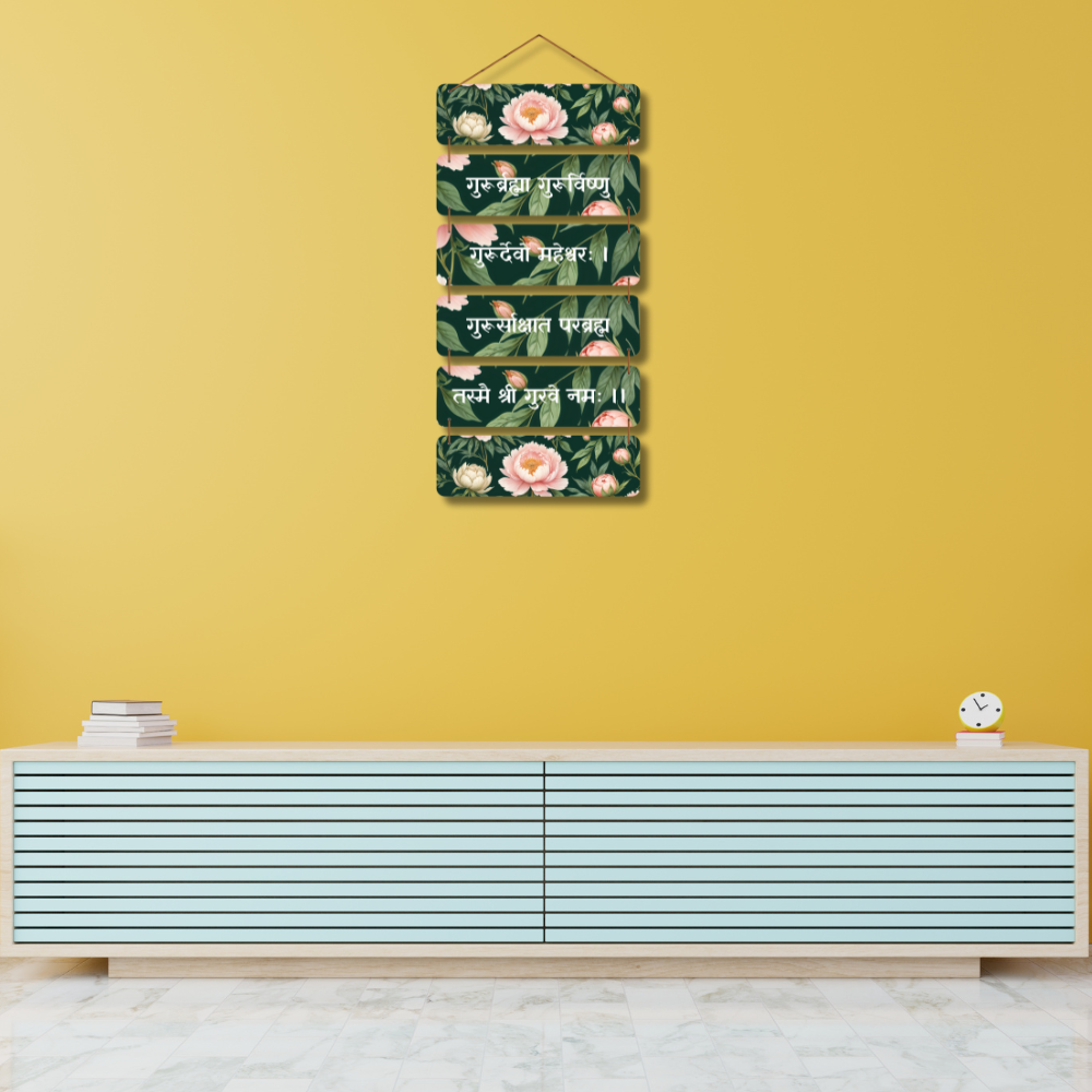 Adorn your space with the divine Guru Mantra beautifully inscribed on a floral-themed wall hanging. The serene blend of spiritual verses and blooming flowers creates an atmosphere of wisdom, respect, and peace. Perfect for pooja rooms, study areas, or gifting, this decor piece reminds us to honor the guiding light of the Guru in every step of life