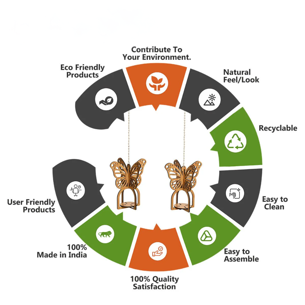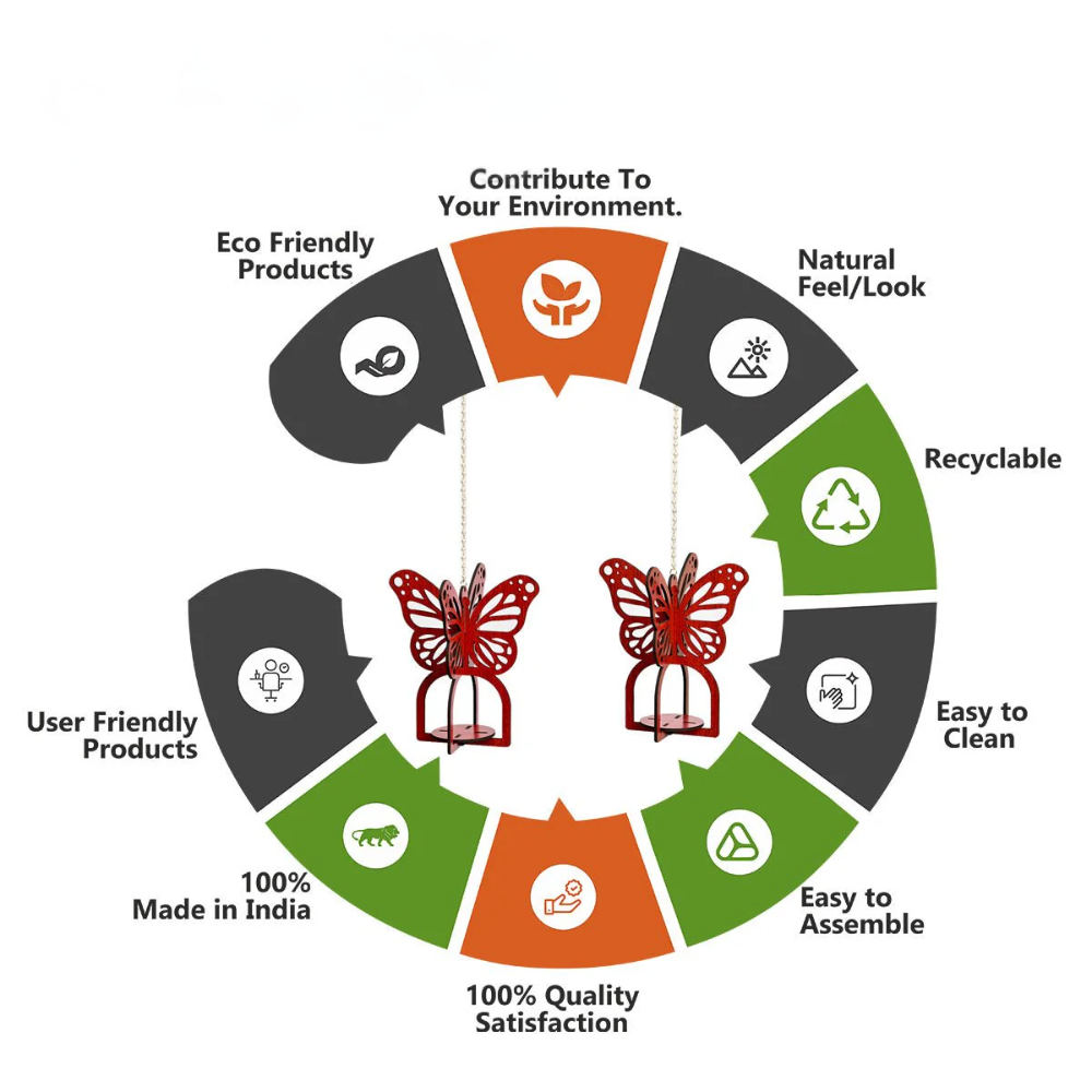 It Is An Integral Custom Or Tradition To Start All The Auspicious Events By Lighting The Lamp To Create A Spiritual Atmosphere. The Set Of 2 Unique Hanging Butterfly Diya Sets With 2 Electric Diya, A Pooja Thali Decorative Item For The Festival, Adds Charm To Your Surroundings. Balcony Decoration Items Outdoor Are An Essential Part Of Diwali Decorations. The Eye-Catching Wooden Diyas For The Pooja Room Is A Traditional Diya Lamp Handcrafted With Love. Used Since Ancient Times As A Decoration And A Source Of Light. These Beautiful Balcony Decoration Items: A Unique And Vintage Look To Your Puja Room. Bring This Balcony Decor Item To Your Home And Get A Divine And Spiritual Feel At Home. The Ethnic Embellishment Is Meant To Bring Good Spirits To Your Home And Brings Enlightenment To The Decor And Is A Perfect Decoration For The Joyous Celebrations Of Life. Enhance Your Festive Decoration With This Beautiful Hanging Flower Pots For Balcony. You Can Also Use Them As Decoration Items For Pooja Festival. A Perfect Wooden Home Decor Item. The Traditional Design Is Very Appealing And Eye-Catching. Diwali Gifts For Relatives, Return Gifts For Pooja, Gifts For Family Members, A Housewarming Gift For A New Home, A Return Gift For Women For Pooja, Return Gifts For Housewarming Ceremonies, Gifts For Inaugurations, Gifts For All Occasions, And The Best Gifting Ideas For Diwali And Karwachauth. Easy To Use, Manages To Look Effortlessly Beautiful, And Can Be Decoration Items For The Balcony Room. The Balcony Lights Used As A Part Of Festivals. This Pooja Decoration Item Will Add More Festival Atmosphere To Your Surroundings. Wind Chimes For Balcony Are Made Of Quality Products, 5.5 Mm Polished Mdf Engineering Wood To Last Longer Light In Weight, Made With A Quality Product, And Very Easy To Clean. Strong Quality, Not Easy To Break. Note: With These Beautiful Hanging Butterfly Diya Sets, You Will Be Getting Two Electric Diya.