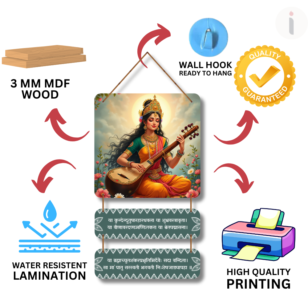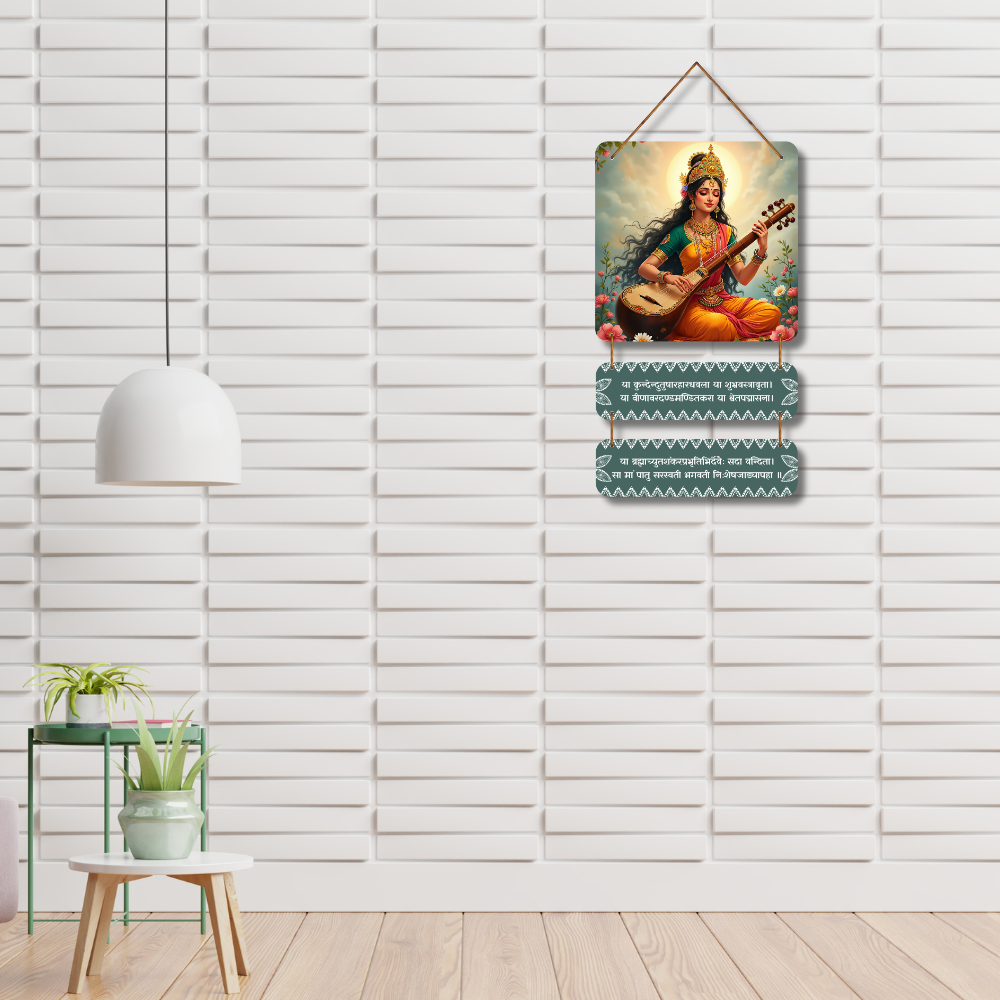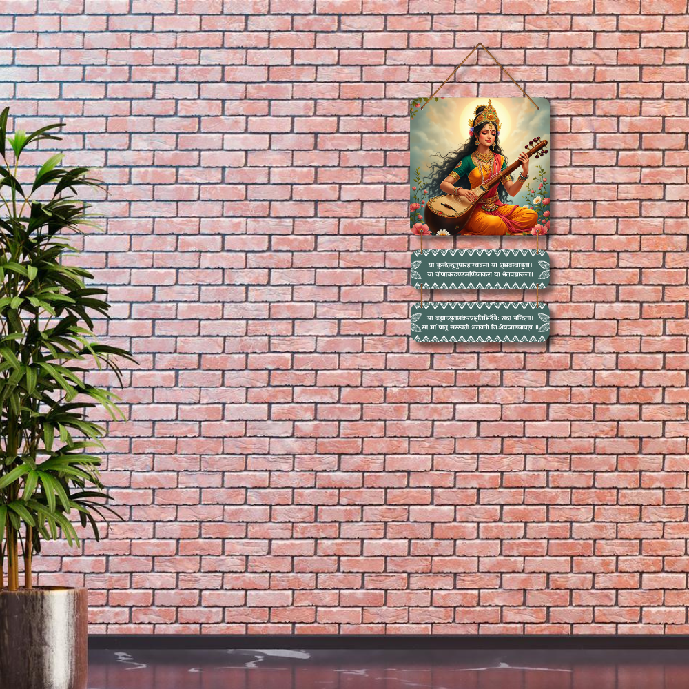 Invite wisdom, purity, and creative energy into your space with this Ya Kundendu Tusara Hara Dhavala Wooden Wall Hanging 🎶🪔. Featuring Goddess Saraswati with the sacred shloka, it symbolizes knowledge, learning, and calm focus 📚✨. Perfect for study rooms, classrooms, offices, or gifting, this elegant décor inspires clarity, devotion, and positive vibrations every day 🌸🙏.