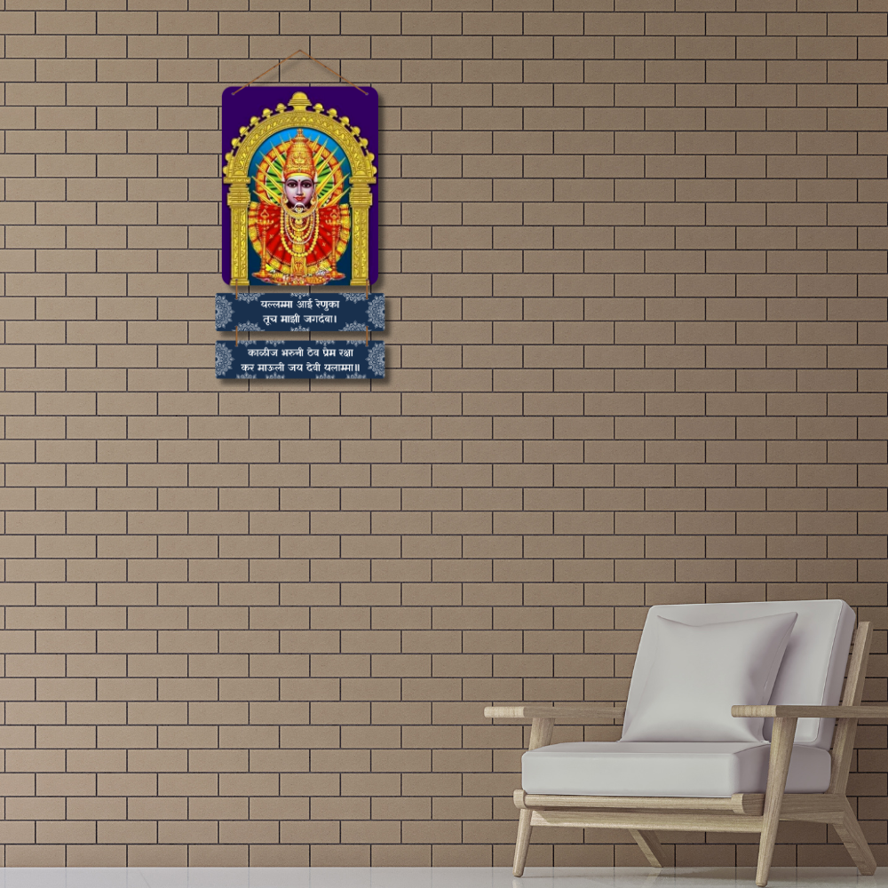 Invite divine grace and protection into your home with this beautifully crafted wooden wall hanging of Goddess Yallamma 🙏🌸. Adorned with vibrant traditional artwork and devotional Marathi verses, it symbolizes motherhood, strength, and unwavering faith ✨🕉️. Perfect for pooja rooms or sacred corners, this décor fills your space with blessings, peace, and spiritual positivity every day 🌼💫.