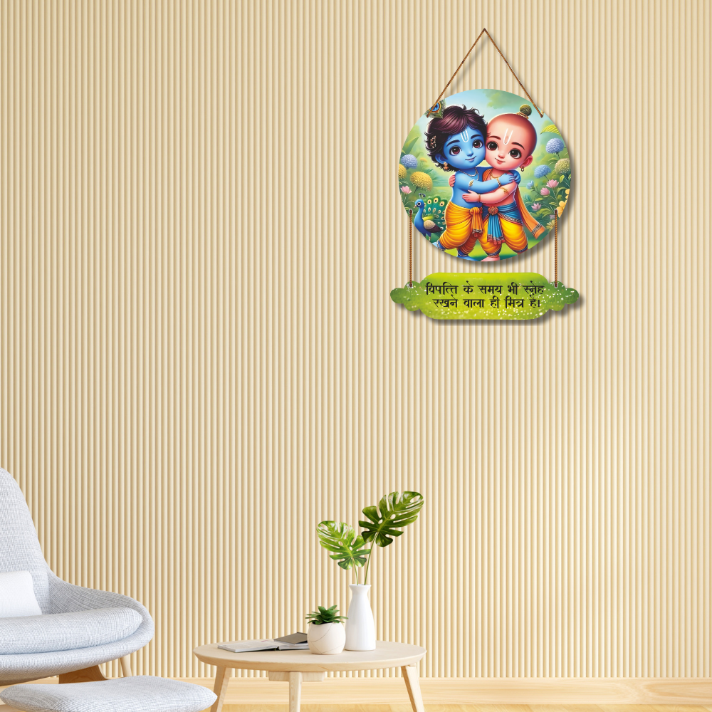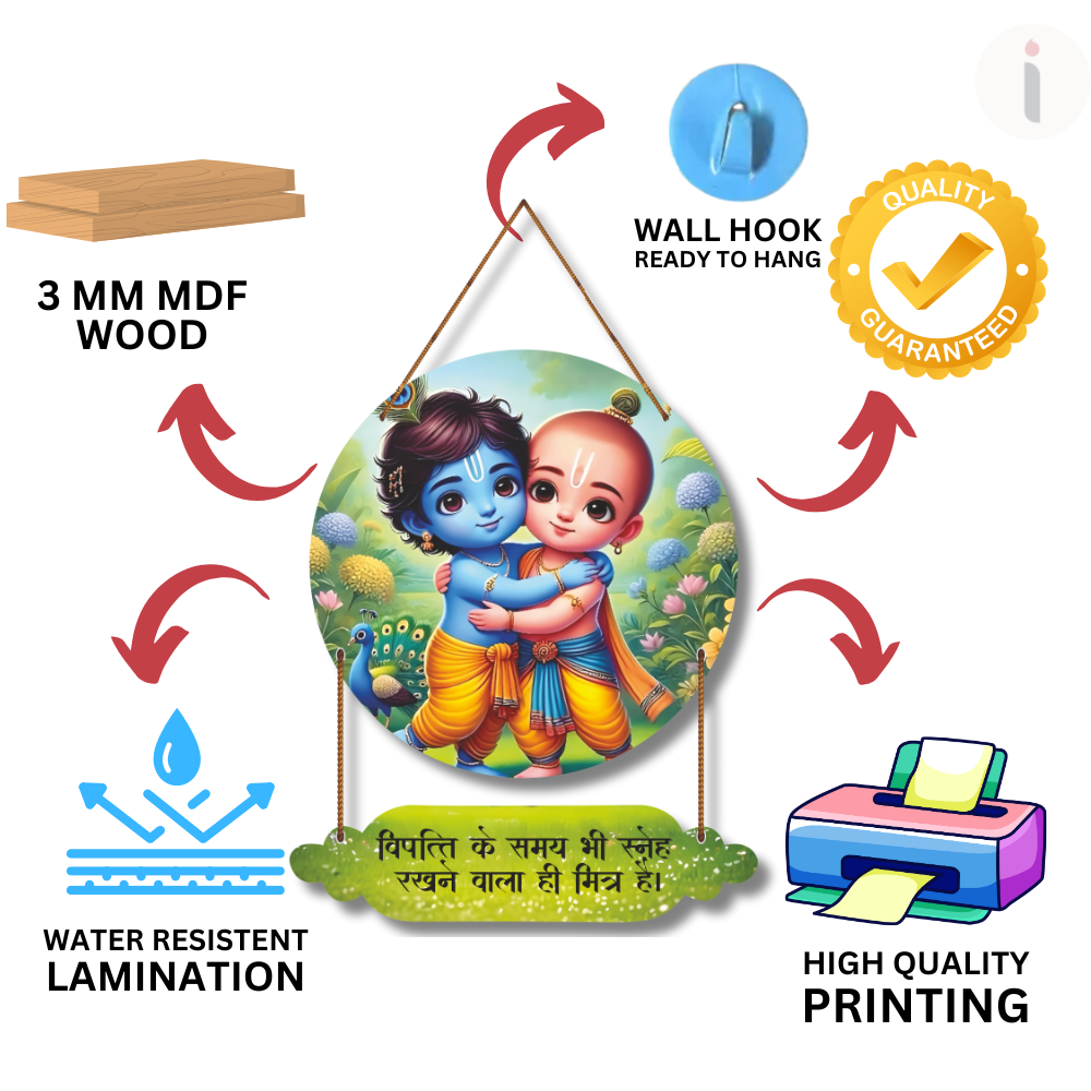 This beautiful wall hanging depicts the divine bond of Krishna and Sudama, symbolizing true friendship that stands strong even in difficult times. The quote, “Vipatti ke samay bhi jo saath nibhaye wahi mitra hai” highlights loyalty and trust. A perfect piece for gifting or home décor, it spreads love, positivity, and the timeless value of true friendship.